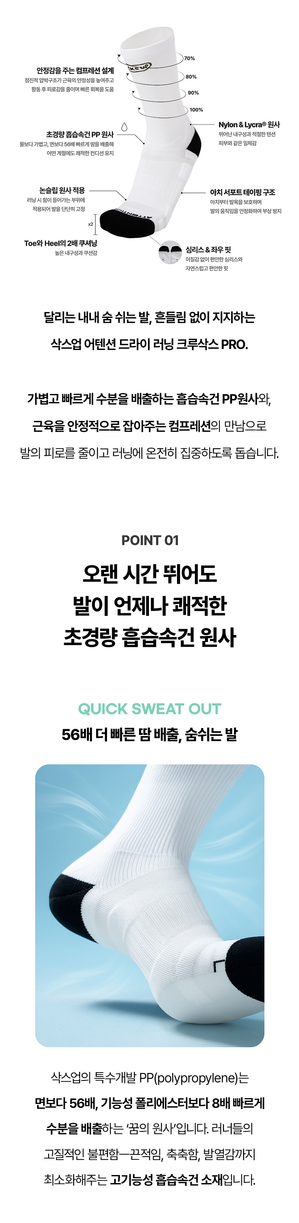 [삭스업] 어텐션 드라이 러닝 크루삭스 PRO (시크릿 링크)