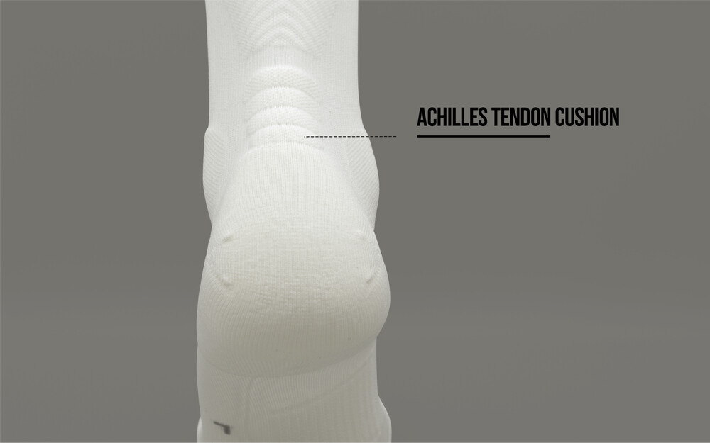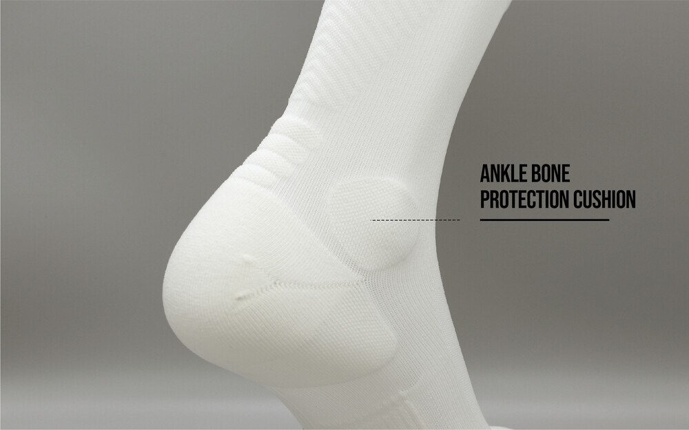 부상이 잦은 복사뼈 양측과 아킬레스 건을 보호할 수 있는 쿠션을 적용하여, 경기 중 차이거나 밟히면서 발생하는 부상을 방지하는 데에 도움을 줍니다.