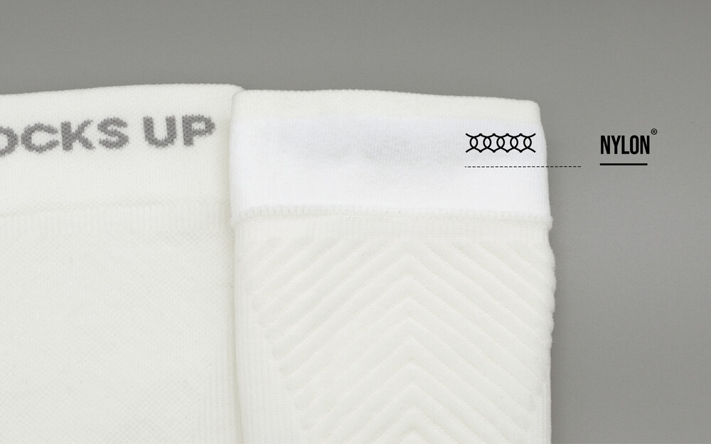 가장 견고한 내구성을 가진 Nylon® 85%와 적절한 텐션으로 압박하는 Lycra® 15%를 혼용하였어요. 운동 중 양말이 흘러 내리는 불편함이 없고 적절한 텐션으로 발과 발목, 종아리를 압박해 탁월한 퍼포먼스를 기대할 수 있습니다.