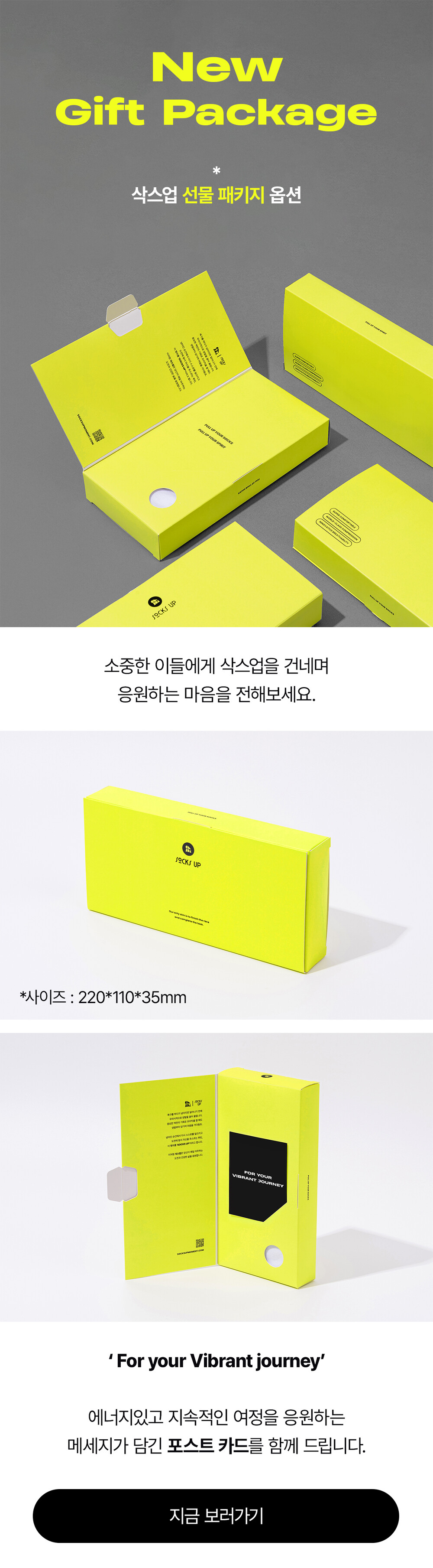 삭스업의 기본 패키지는 반투명한 재활용 비닐 소재로 제작하여, 제품을 한 눈에 볼 수 있고 분리배출이 가능합니다.