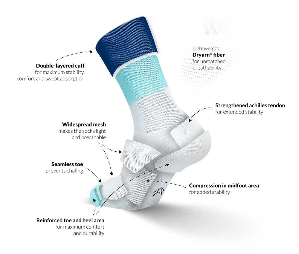 러닝과 싸이클링을 위한 High-Performence 삭스를 주요 라인업으로 갖추고 있으며 Kristian Blummenfelt, Daniela Bleymehl 등 유명 트라이애슬론 챔피언들이 사용하고 있습니다.