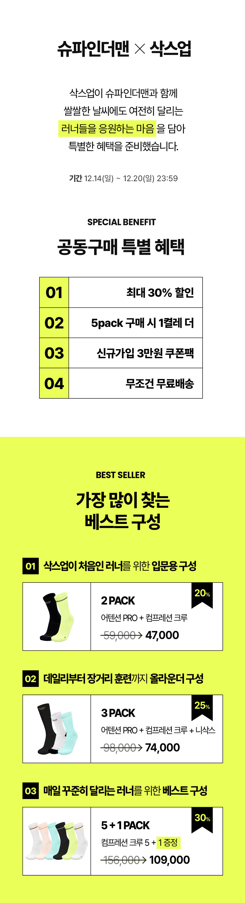 [슈파인더맨 공동구매] 삭스업 러닝삭스 PACK